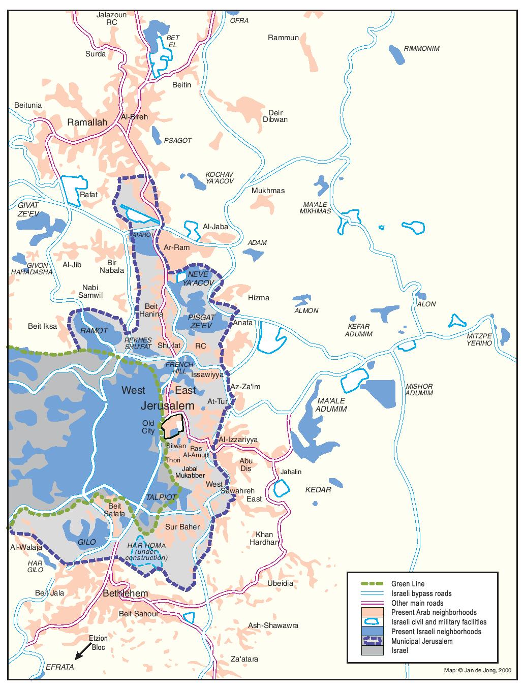 ISRAELI SETTLEMENTS AND PALESTINIAN NEIGHBORHOODS IN EAST JERUSALEM, 2000