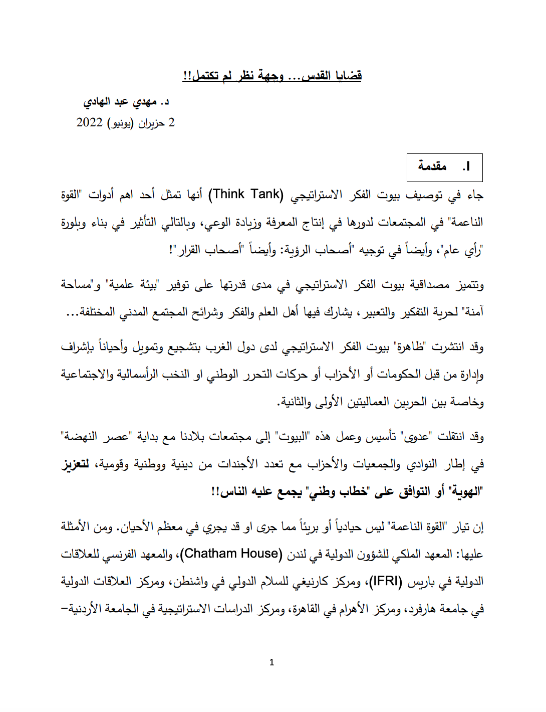 Dr. Mahdi Abdul Hadi