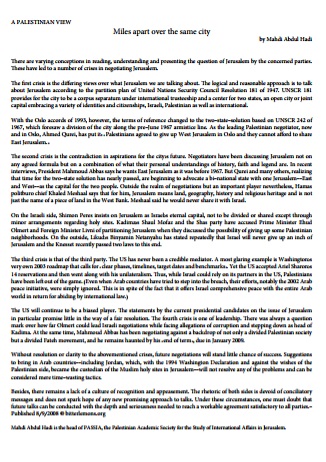 A Palestinian View – Miles Apart Over the Same City